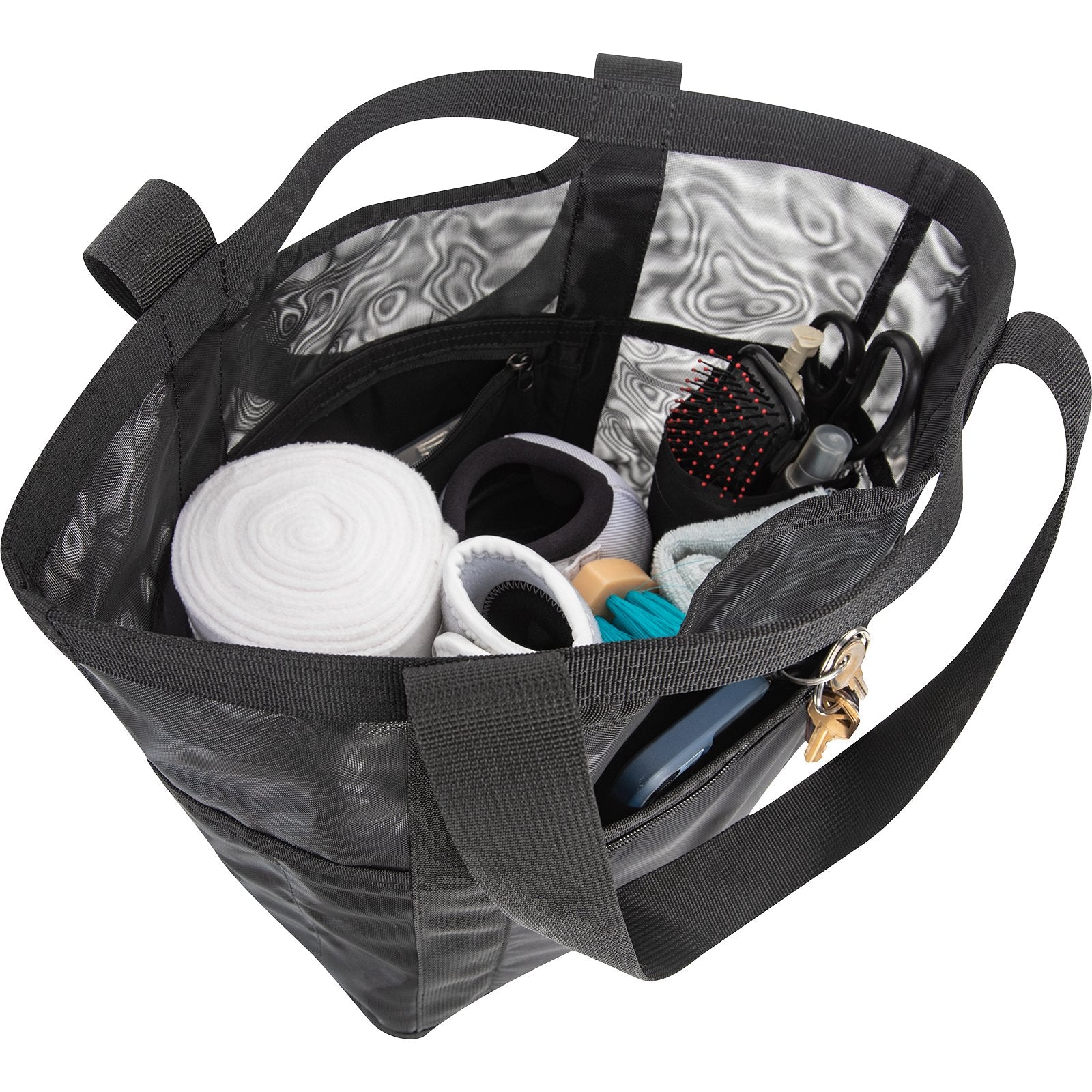 No more running back to the trailer—the Arena Ready Bag keeps your gear where you need it: close by. From boots to tail bands to your phone, it’s a smarter way to stay organized. Versatile enough to sling over your shoulder, hang on your saddle horn, or grab by the handle.